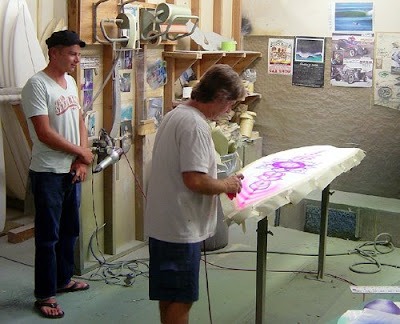 August 17, 2008That board is not for Tyler, it’s for John Frasier, the owner of Rainbow Surfboards. TW is just watching.