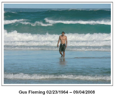 I’m still trying to wrap my mind around the fact that Gus Fleming has passed away, it doesn’t seem right. Gus was an amazing surfer and he had the most positive attitude towards life I’d ever known. Why do people like that always die young?