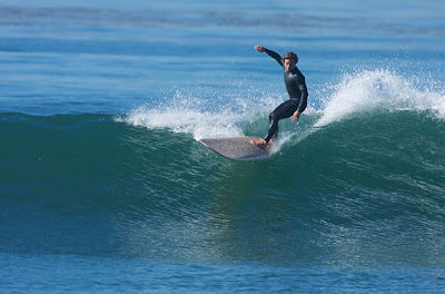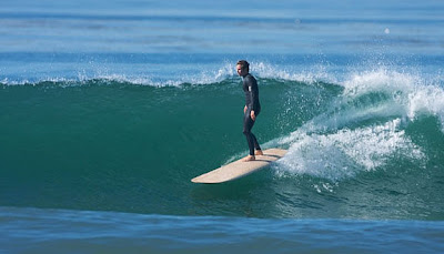Remember the 1940’s Simmons replica John Cherry and Terry Martin recently built? (see The New Monolith. Perpetually stoked surf rat Justin Phillips got some good ones on it the other day.