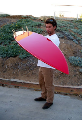 Ed Burke is a mysto guy who brings shaped blanks to Moonlight every once and awhile. Ed worked with Pat Curren building incredible wood guns for a couple of years and Tom Curren even rode one of Ed’s trippy single fins in a contest once. This red opaque quad is for a friend of Ed’s (sorry, I didn’t catch the dims).