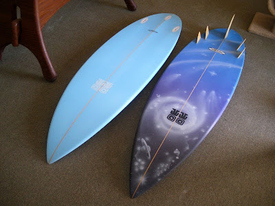 Airbrush work by Peter St Pierre. Both boards wetsanded gloss finish.