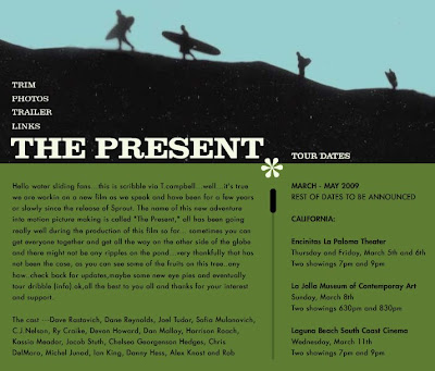 Thomas Campbell has finally announced tour dates for his new surf film The Present, premiering at the historic La Paloma theater in Encinitas, California March 5th, 2009.