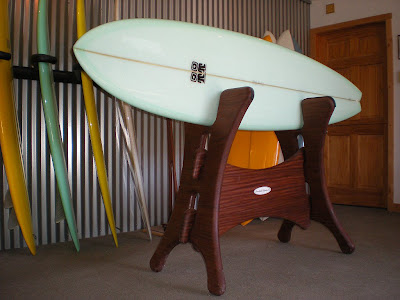 Berne’s new 7’6″ Malcolm Campbell is looking good in the rack he built for us.