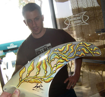 Cool kelp fin art by Rick DeJianne. Rick is from New Jersey and was in town recently to do some surfboard and fin painting.