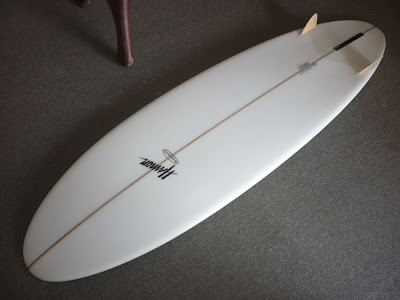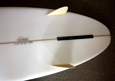 Rick Hamon and my Dad Peter St Pierre used to make these modified hull/egg boards in my Dad’s garage back in the 20th century. They called them Ham ‘n Eggs or something like that. Since then my Dad has gone from garage glasser to full on surfboard factory owner and Rick has been the head shaper at Rusty Surfboards for the past 20 years or so. Earlier this year Rick shaped this 6’9″ for my Dad. It was a single fin until last week, my Dad just added those snazzy bamboo sidefins. You knoe, to give his egg a little extra bite. I haven’t ridden it but I’ve seen my Dad get a few nice waves on it. If you want one we could probably make you one too.