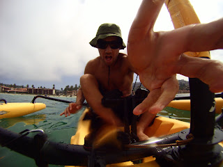 “The reason for this journey is to hook up with great surfer, environmentalist and good friend Dave Rastovich to embark on a 700km journey from Byron Bay to Sydney Australia (think SF to LA). Our goal is to travel along side the annual migration of Humpback whales on their mission towards Antarctica. Through our journey we are hoping to spread awareness of the annual whale hunts happening in the Southern Whale Sanctuary as well as the 23,000 dolphins killed annually in Taiji, Japan. Dave, lens man Hilton Dawe and a rotating boat will travel in 16ft Hobie kayak/outrigger/sail boats hoping to tap into the raw powers that the ocean will bring our way.”
