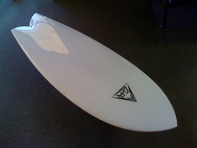 Modern Fish shape featuring performance rails and bamboo “lowboy” keels (swept back outline, single foiled, towed-in and canted out). Loose and easy to surf backside.