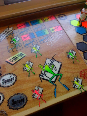Me and my son slide quarters or sugar packets on the tables trying to land on the logos. Moonlight pays 10 to 1.