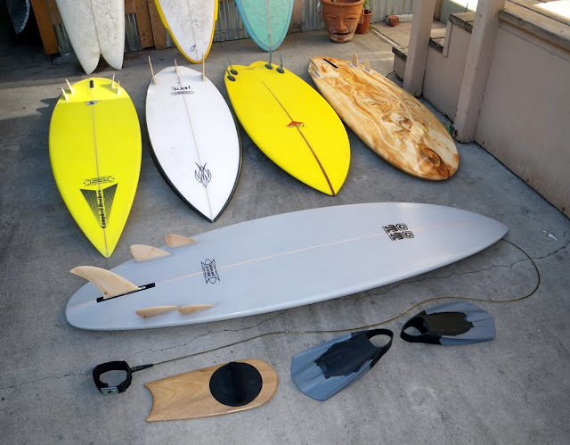 5’11” Russ Hoyte Twinphinzer for fun beachbreaks and little secret reef.