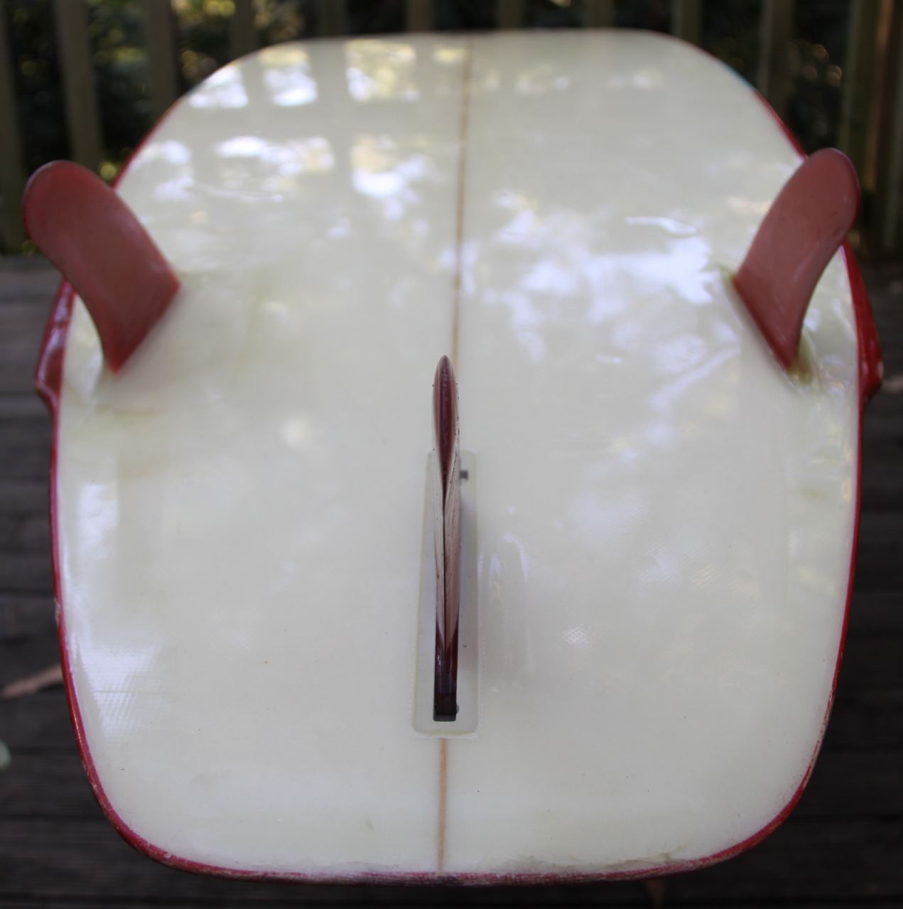 Hey I found one of those a year or so back when my neighbor was throwing it out. It was beat up (missing the center fin) but with a little tlc could of been a sick board…Wound up selling it to someone in the area. If you want I can send you a jpeg of it. I would also love to learn more about that board. Sick shape.