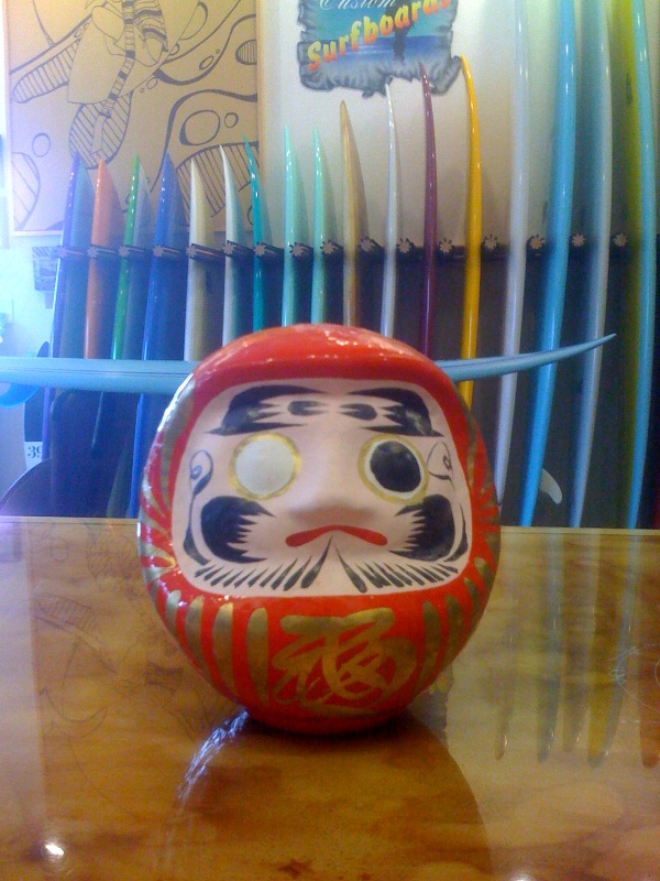 Surfy Stuff Hello By Surfy SurfyJuly 24, 20104 Comments Surfy Surfy Online Store! 4 Comments Surfy Surfy Posts by Surfy Surfy previouslyThe Kerrs Rip up next Artifact of Stoke Leave a Comment Cancel replyYour email address will not be published. Required fields are marked * Save my name, email, and website in this browser for the next time I comment. Notify me of follow-up comments by email. Notify me of new posts by email. Δ 4 Comments Skye July 24, 2010 A beckoning cat? Reply Anonymous July 24, 2010 It’s called a DarumaYou’re ‘sposed to color in one eye while thinking of a goal or dream. Then color the other eye when you’ve realized your dream, or accomplished your goal. I gots a couple with both eyes, and many more with just the one eye. Still dreaming………..tommy Reply Aussie Surfer July 24, 2010 Where are they from? Is that a Japanese / Chinese Character on the front? Reply Surfy Surfy! July 24, 2010 This was a gift from some friends in Japan. I suppose I should color in the other eye since all my dreams have come true. Reply