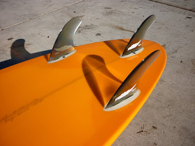 Fins: Micro-Lokbox fin system with fiberglass Taylor Knox signature fins (good for eggy boards due to their balance of drive, hold and looseness). The tri-fin set up offers a no worries stable platform.