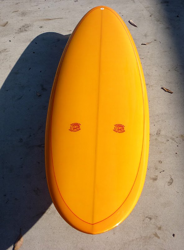 Glassing: 5/5/4 Garibaldi orange resin tint by Gary Stuber at Moonlight Glassing (the Garibaldi is the official state fish of California).
