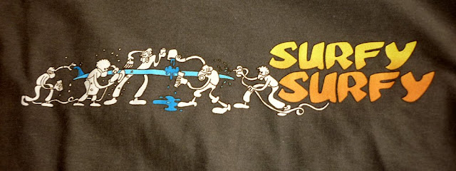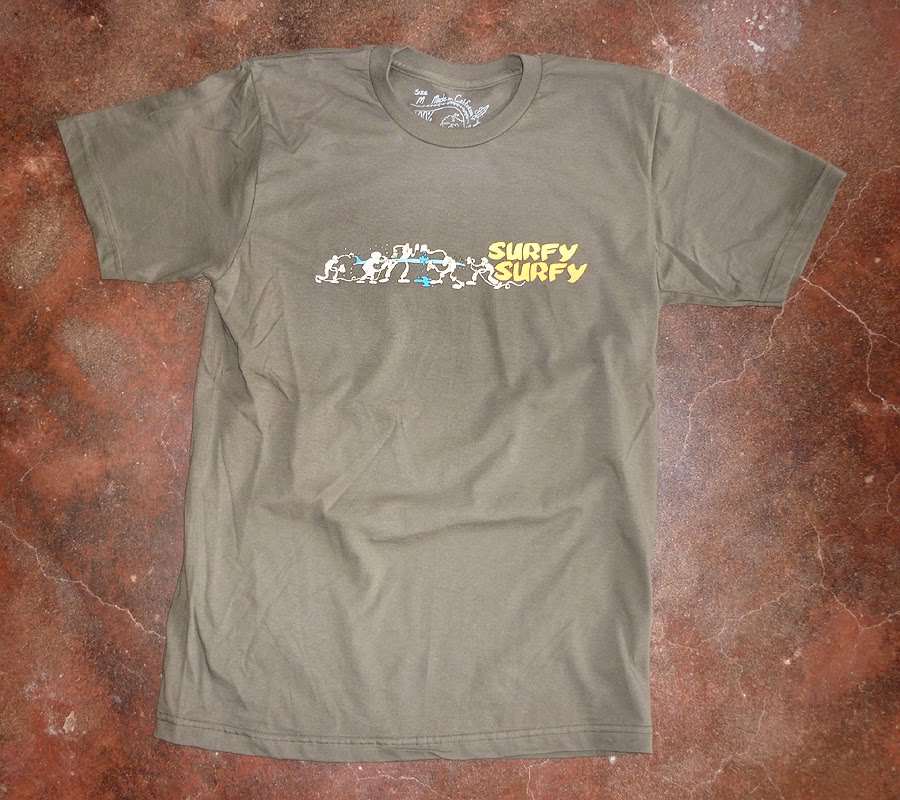Check it out internet amigos, we just got a fresh batch of Surfy Surfy t-shirts delivered. They feature our new updated Surfy Surfy blog header logo.