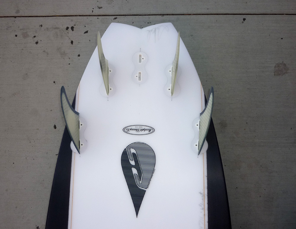 Did you know that you can order custom surfboards at Surfy Surfy Surf Shop from talented underground shapers and have them glassed at Moonlight Glassing? Surfy Surfy team member Grant Thomas knows this and thus he is now the proud owner of this sweet 5’2″ Ryan Sakal Nugget with crafty duel stringers. Grant’s aunt, Surfy Summer looks like she might be borrowing it in the near future.