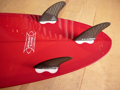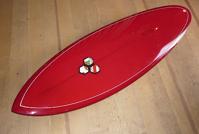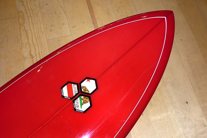 Sweet red tint by Gary Stuber. Rare California hex by Surfy Surfy insider Jon Pankopf of Factory 101. Shown here with the ultra-rad FCS Nexus fins.