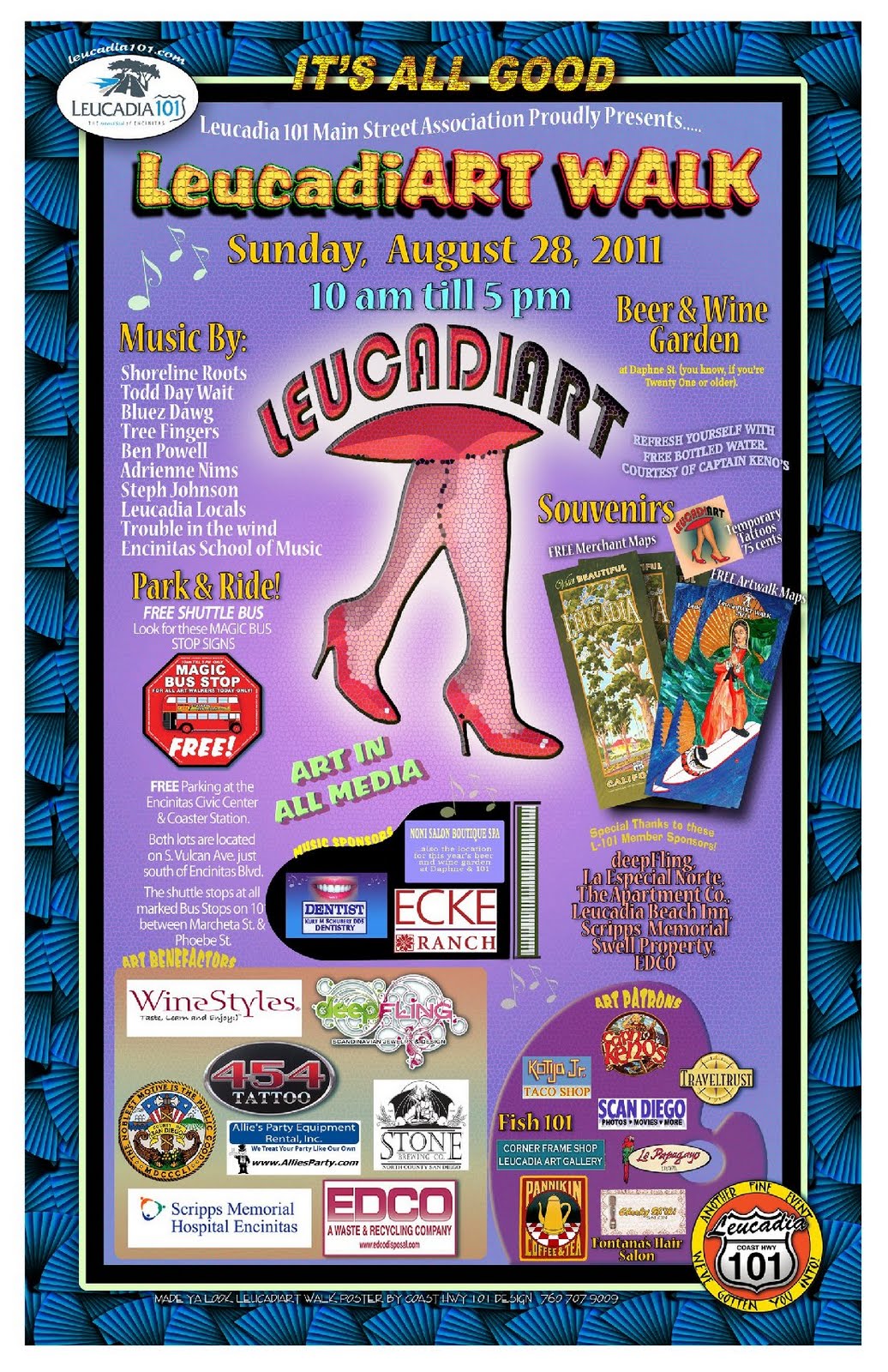 LeucadiART Walk features “one mile of talent on Hwy 101,” with artists displaying their art on the west side of Hwy 101 between Marcheta and W. Glaucus Streets. The Event Features: Art Demonstrations ~ Live Music ~ Children’s Art Activities ~ A Wine & Beer & Wine Garden (fees apply)~ Free Double-Decker Shuttle Bus Service ~ Free Parking at the Encinitas Civic Center and Coaster Station, both located on Vulcan Ave. at D. Street.