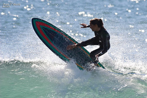 Original Surfy Surfy team rider Bilandra surfing her Gary Hanel twin fin Fish in 2005.