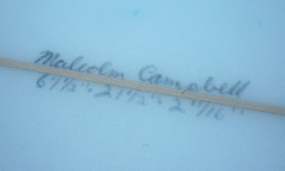 Shaped by Malcolm Campbell (pictured bottom photo early design test).