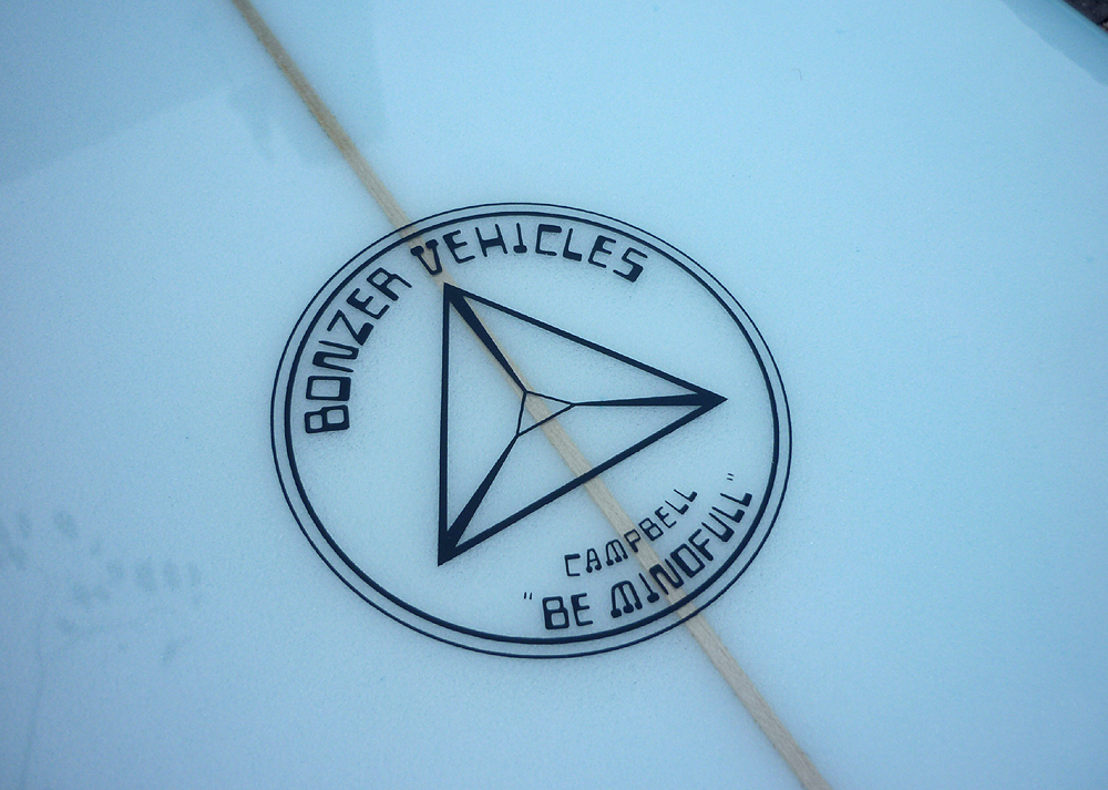 6’1″ x 21 1/2″ x 2 11/16″ Roundnose 3 fin Bonzer with light vehicle concaves.
