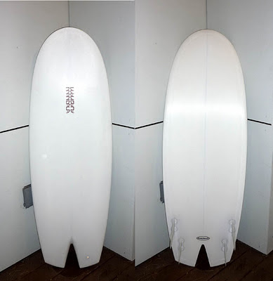 White opaque resin tint. Westsand gloss. Rare Mandala surfboard with removable custom fiberglass fins.