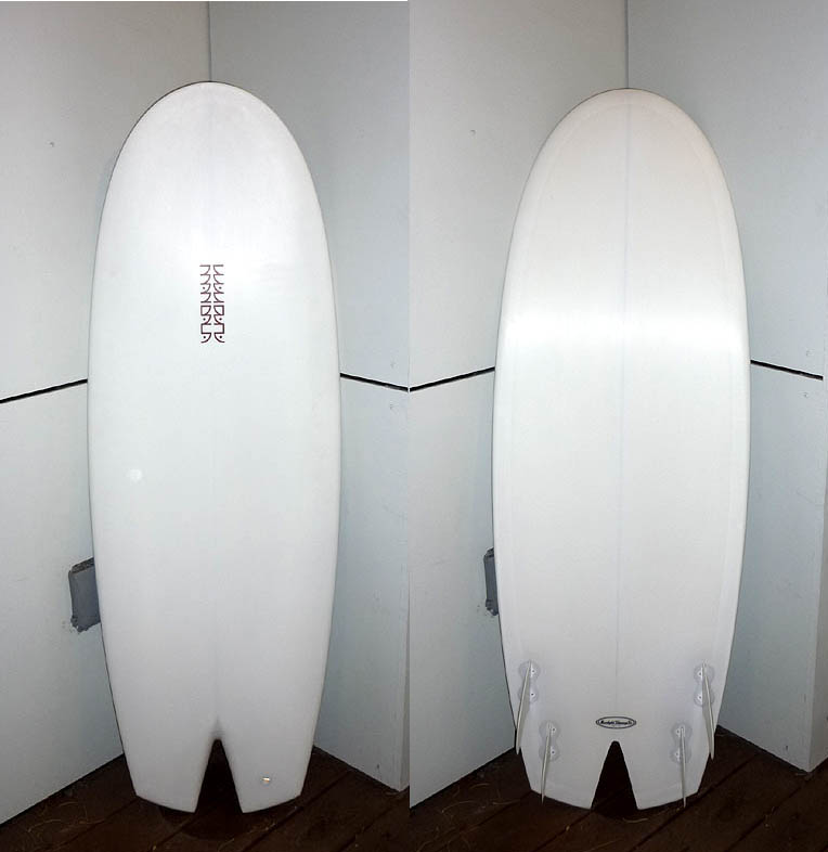 White opaque resin tint. Westsand gloss. Rare Mandala surfboard with removable custom fiberglass fins.