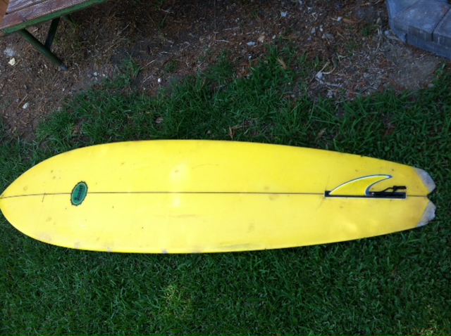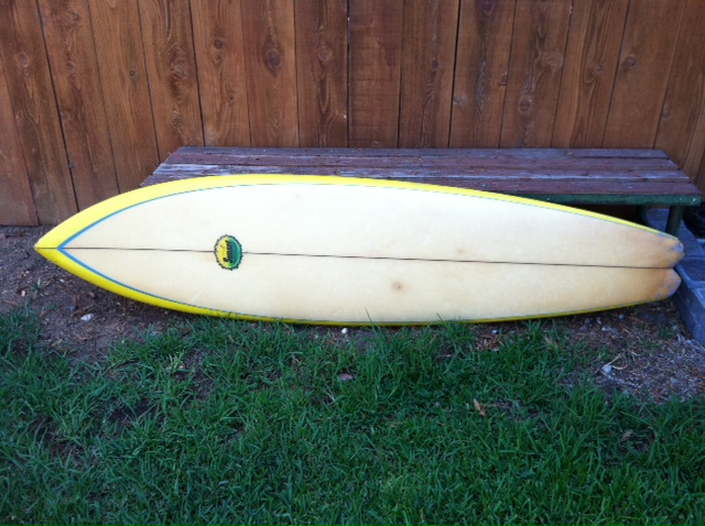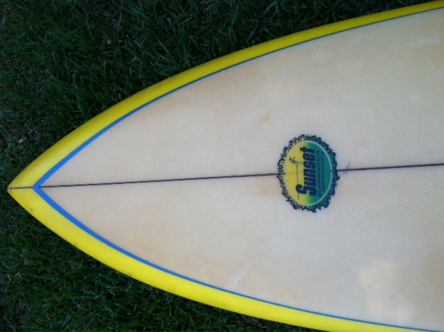 Surfy Surfy reader Joe Scatena sends in these pics of a cool 1970’s Sunset Surfboard shaped by Bill Shrosbree he found at a thrift store in Lemon Grove, California.