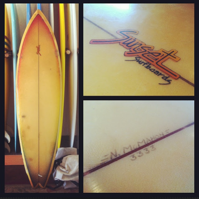 Our friend Erik found Sunset Surfboard #3333 shaped by Ned McMahon at a garage sale.