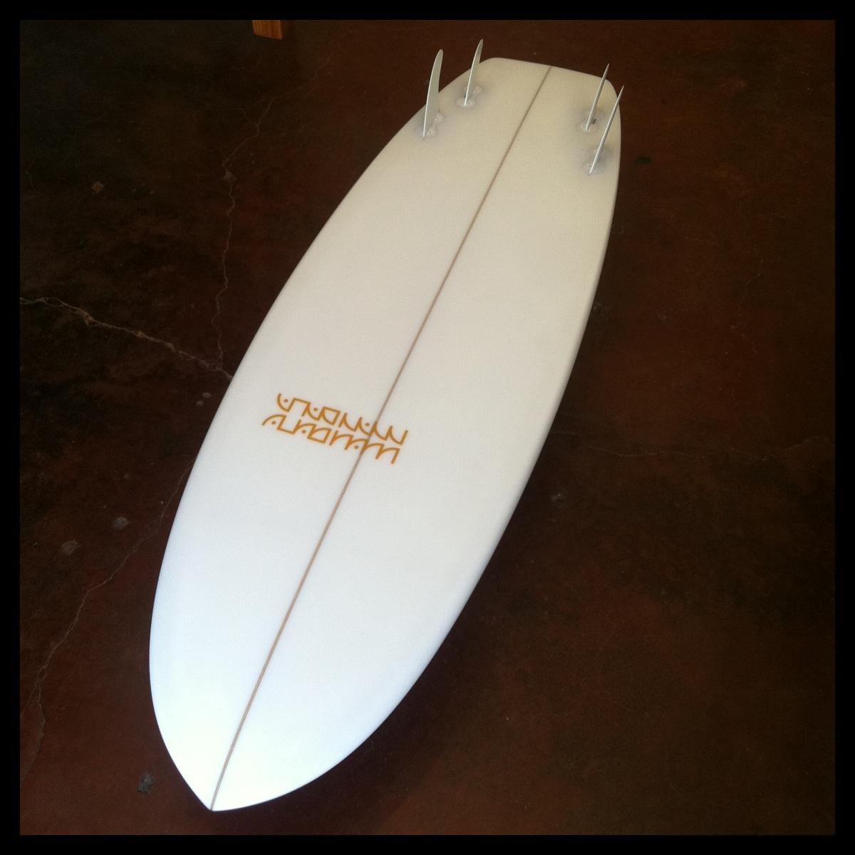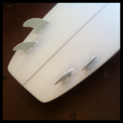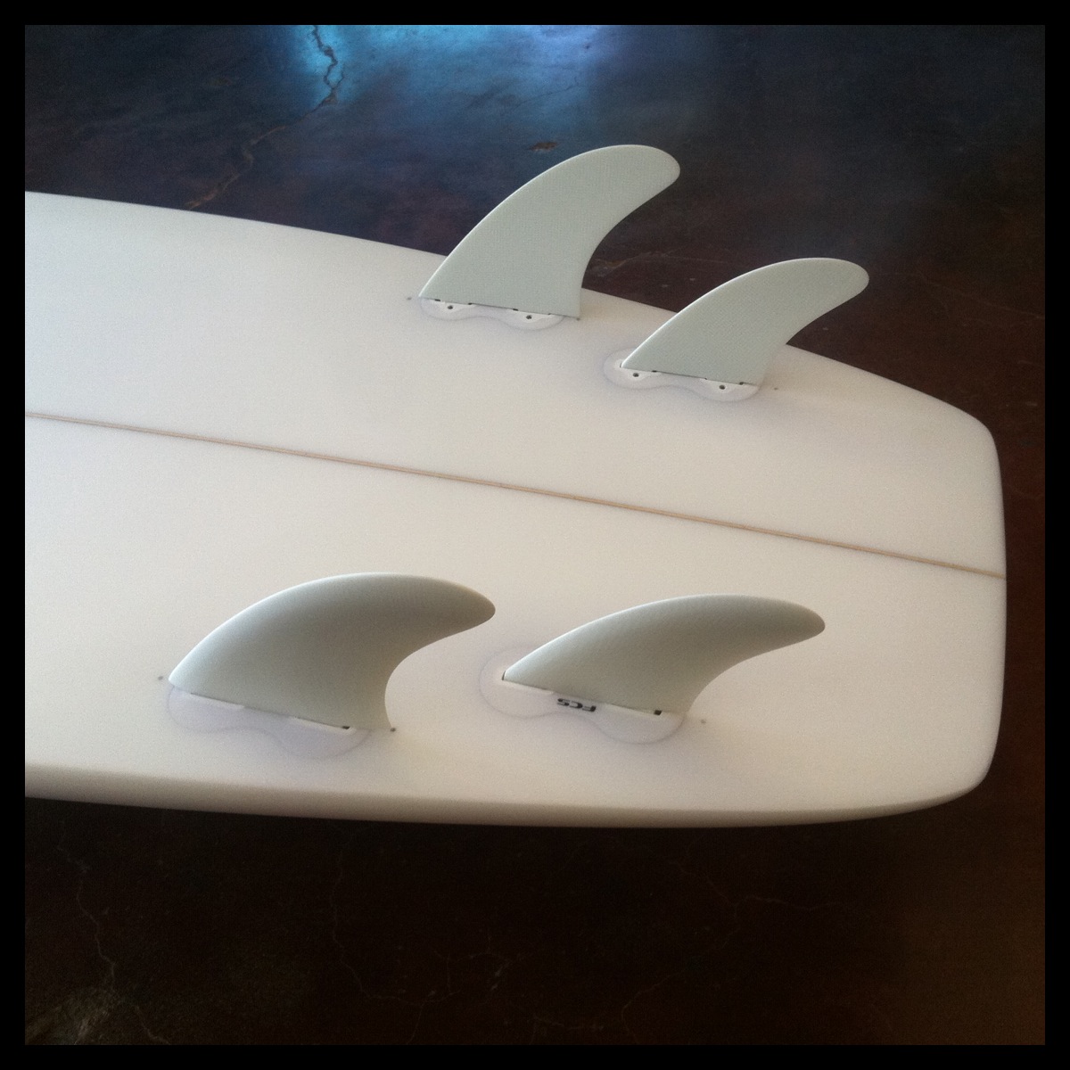 Wide tail for speed. Custom AK4 quad fins for the FCS Fusion system.