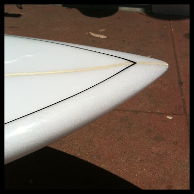 S-cloth, Volan deck patch, FCS Fusion system for side runners, classic center box with True Ames Bonzer fin, pinline, polished gloss deck and rails, wetsand gloss bottom.