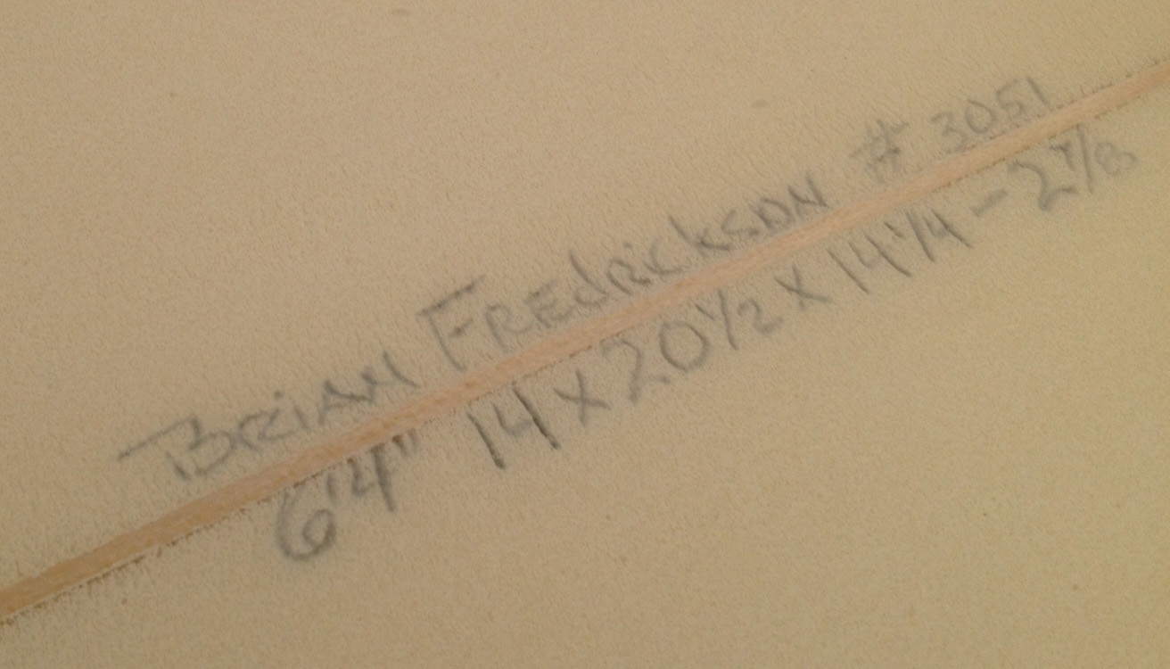 This 6’4″ is off an original template, the rocker and rails cleaned up for 2013.