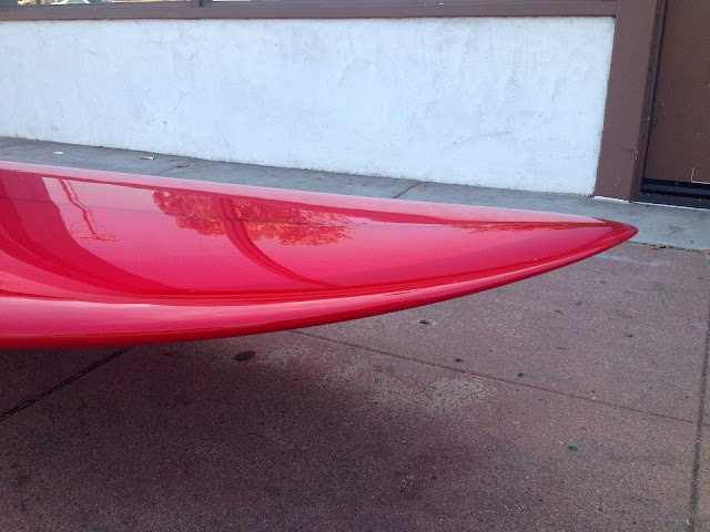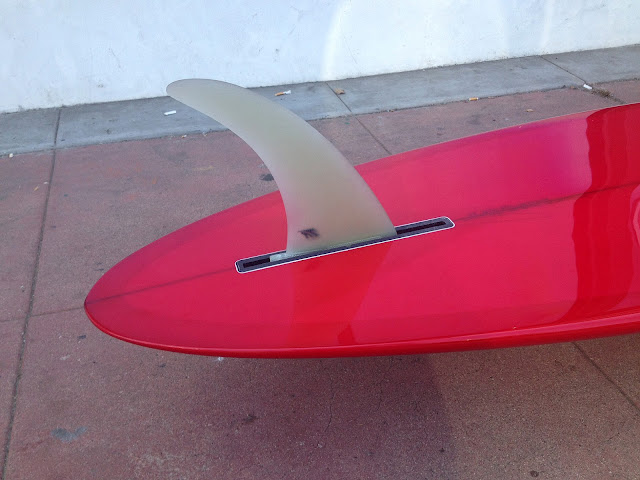 September 14, 2013I do belive that red boards go faster and this one is on the red line. Super shape. The fin is right on as the L flex fins is one of my all time favorites. Aah no skulls those are cool logo’s. Paz, taco’s &$ olas. Doug